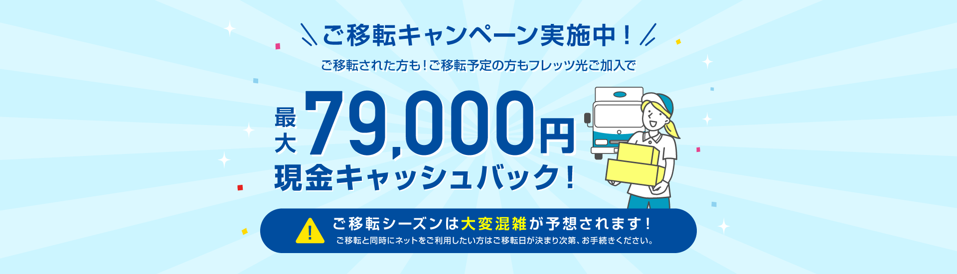 WEBお申し込み特典、ご移転キャンペーン!当サイトからのお申込者全員に最大79,000円キャッシュバックいたします。